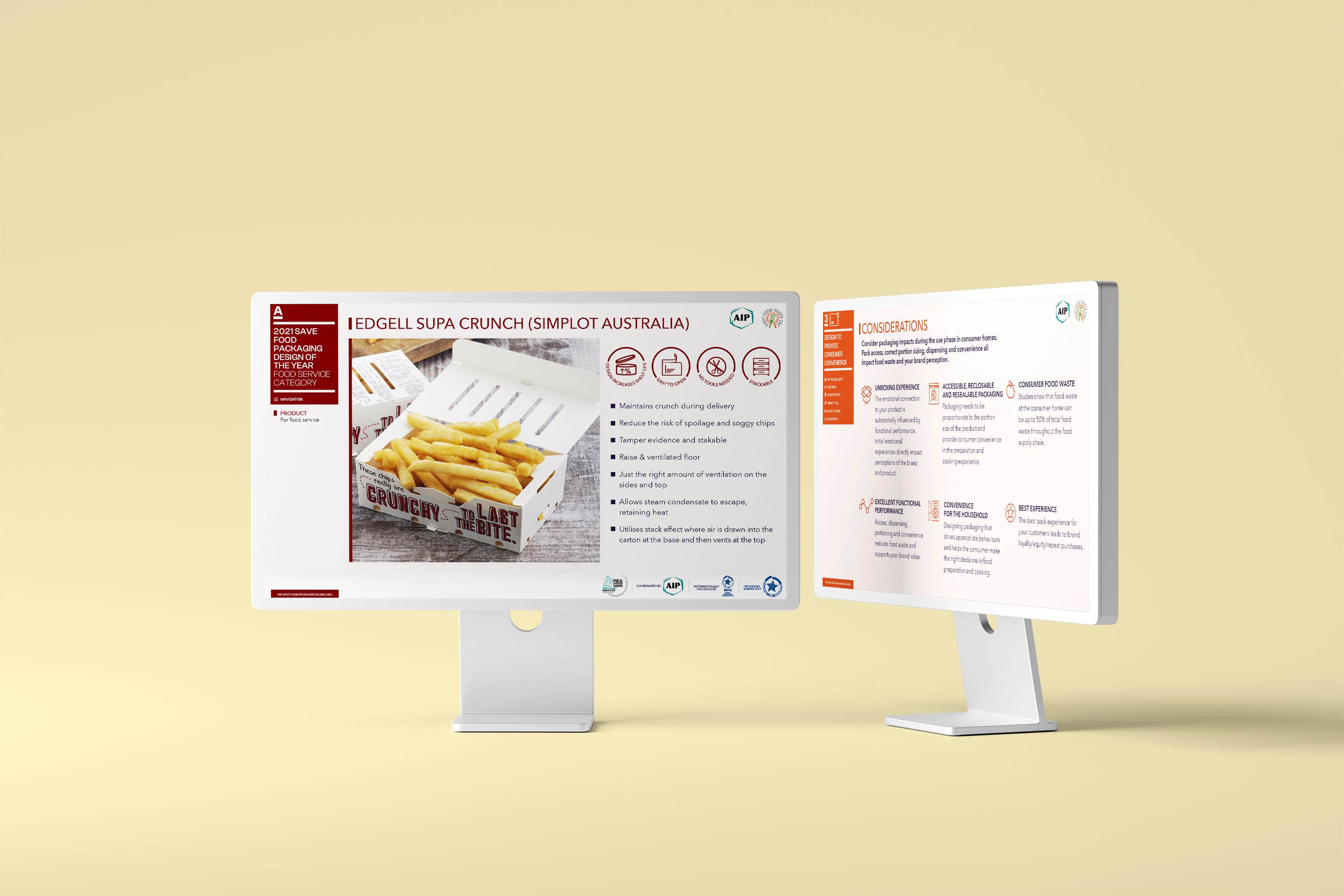 RMIT is a global university of technology, design and enterprise ranked within the top 250 universities in the world. The AIP is the peak professional body for packaging education and training in Australasia. We were contacted by RMIT to assist in the design of a set of design criteria guidelines for Australia's packaging professionals. The criteria set out to highlight key design considerations in designing packaging that minimised food waste.